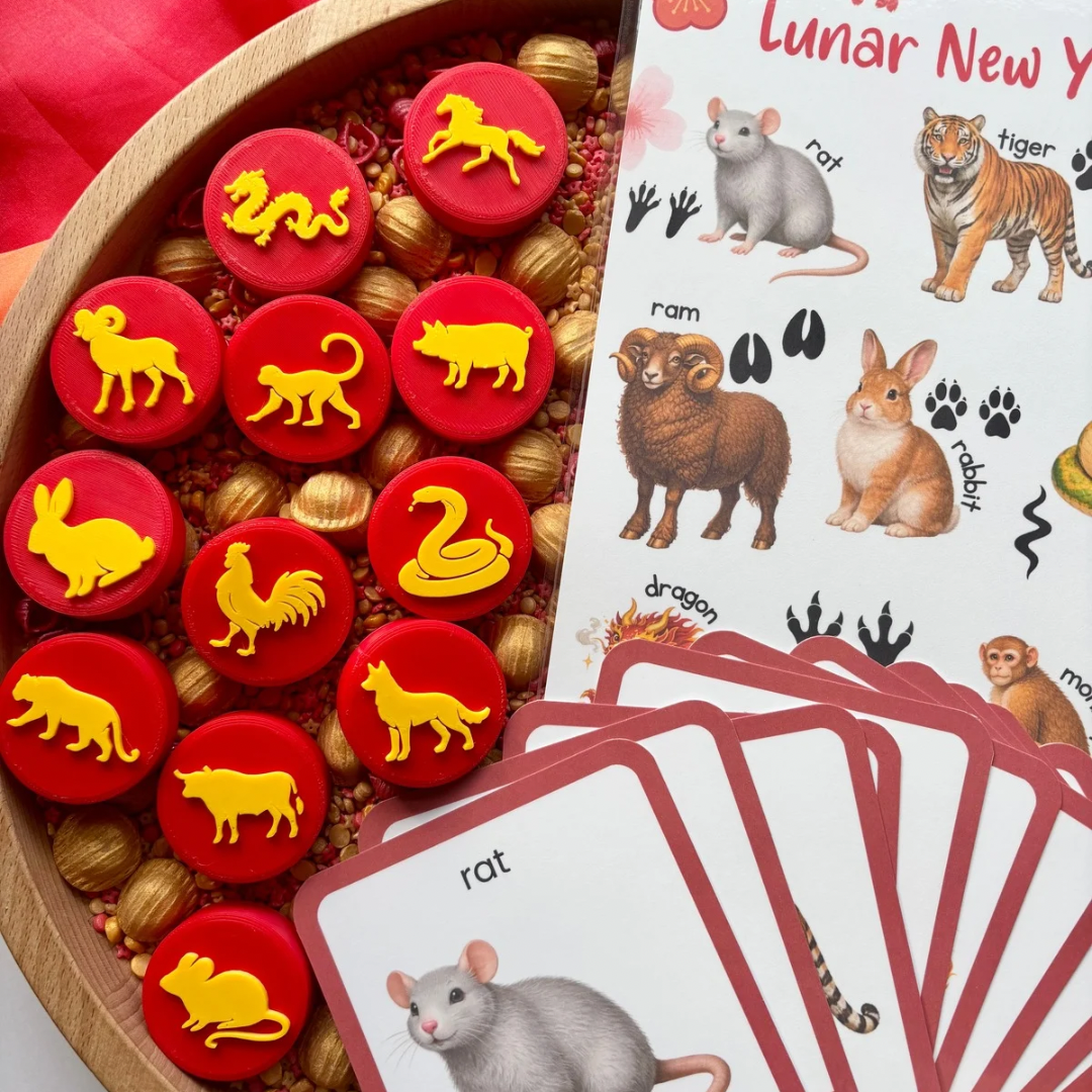 The Full Collection includes 12 flashcards, an A4 print and 12 double sided 3D printed play dough coins.